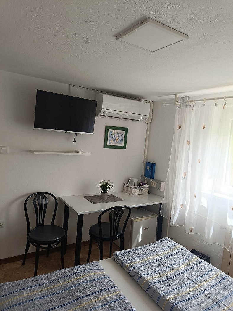 - Room 1 (2 persons) includes a refrigerator and a kettle for preparing hot drinks.