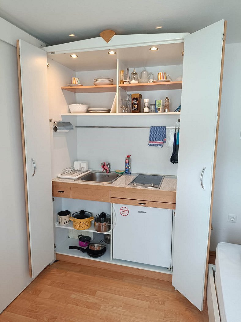 - Studio (2 persons) has a kitchenette equipped for two people.