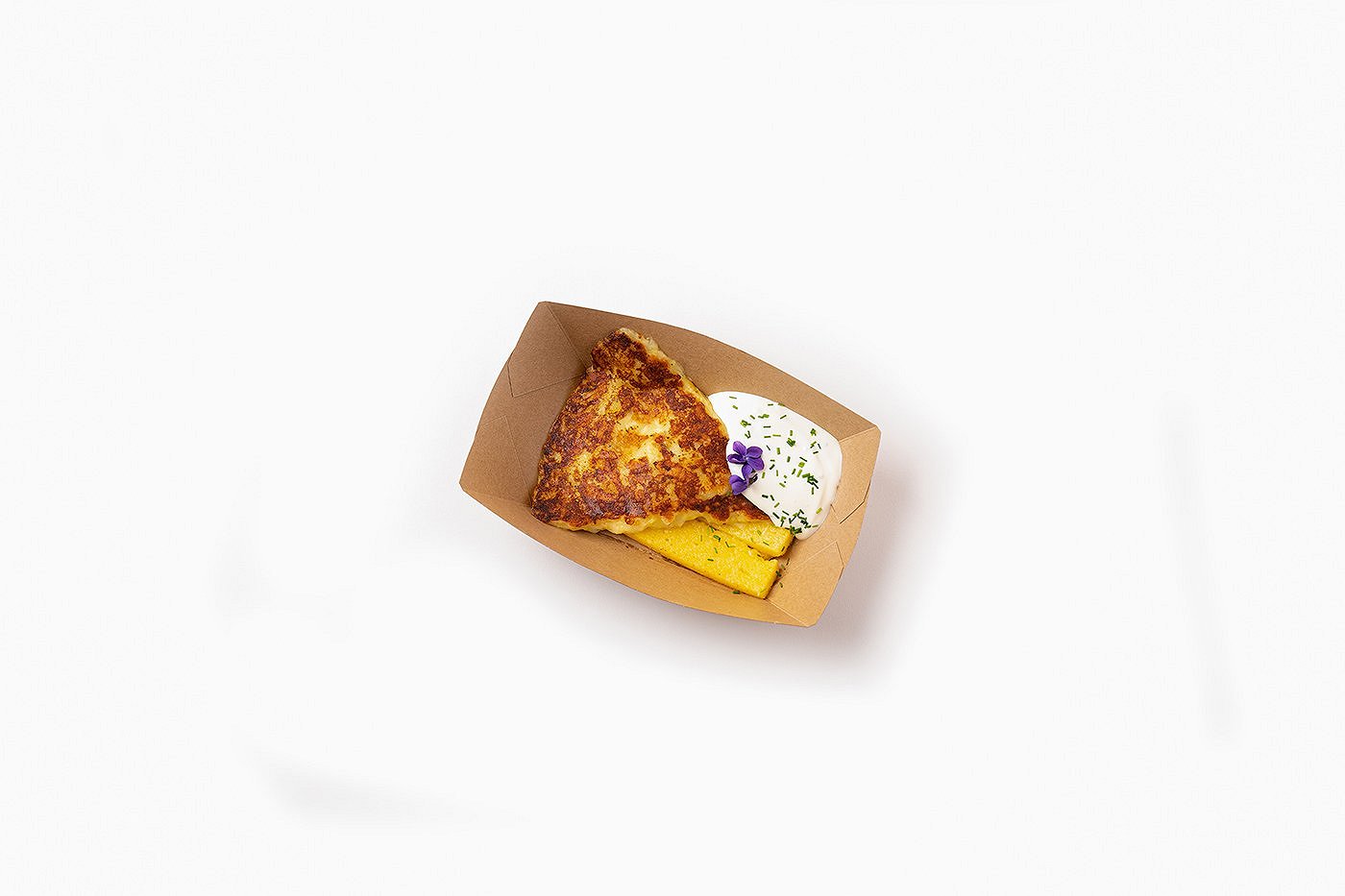 Frika with polenta and chives sauce