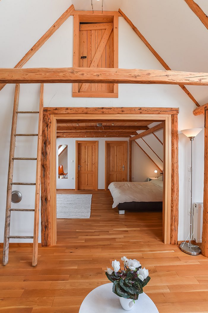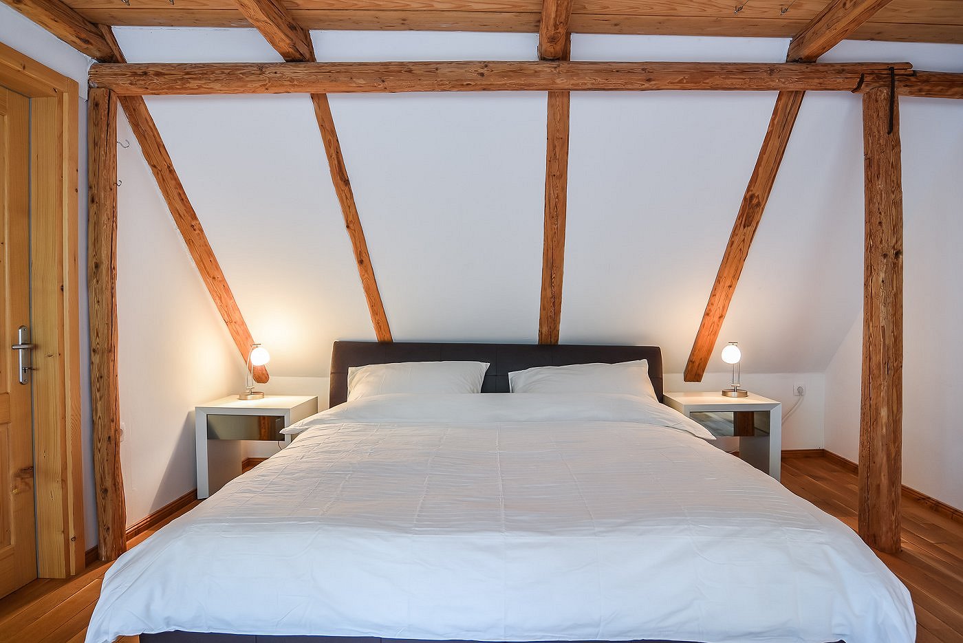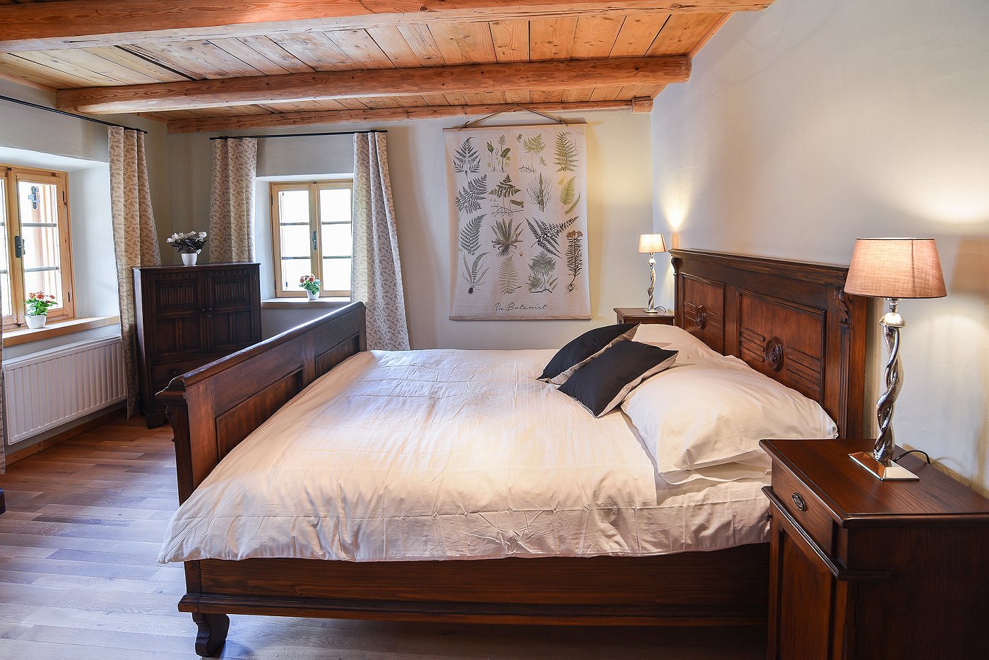 Altre due camere da letto, una è molto grande con soffitti in legno. Bagno su questo piano con doccia.