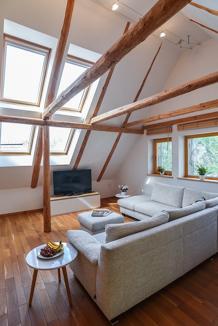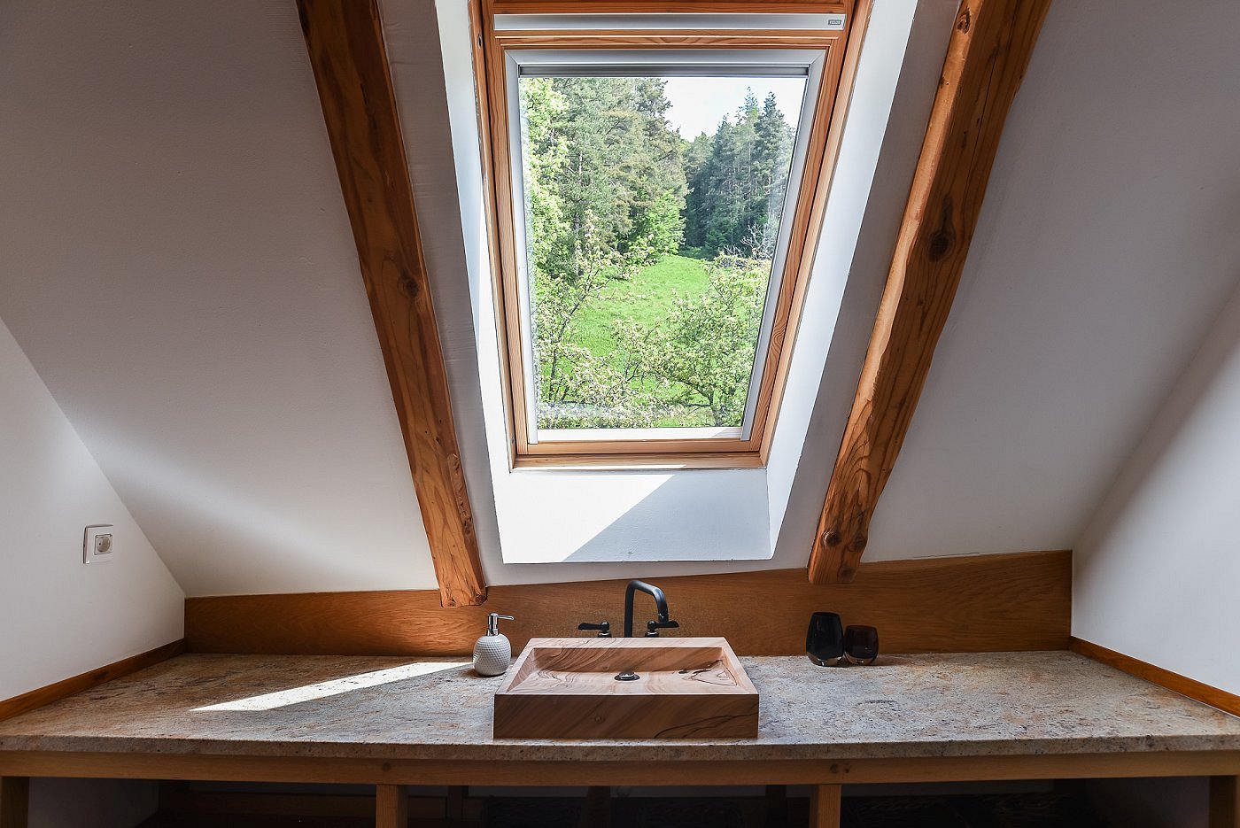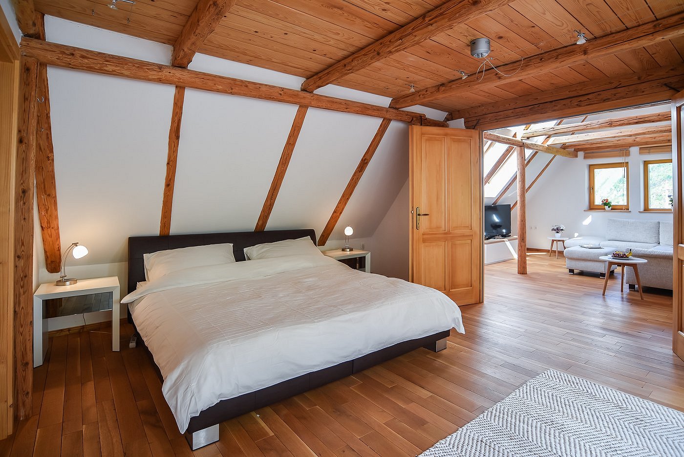 Altre due camere da letto, una è molto grande con soffitti in legno. Bagno su questo piano con doccia.