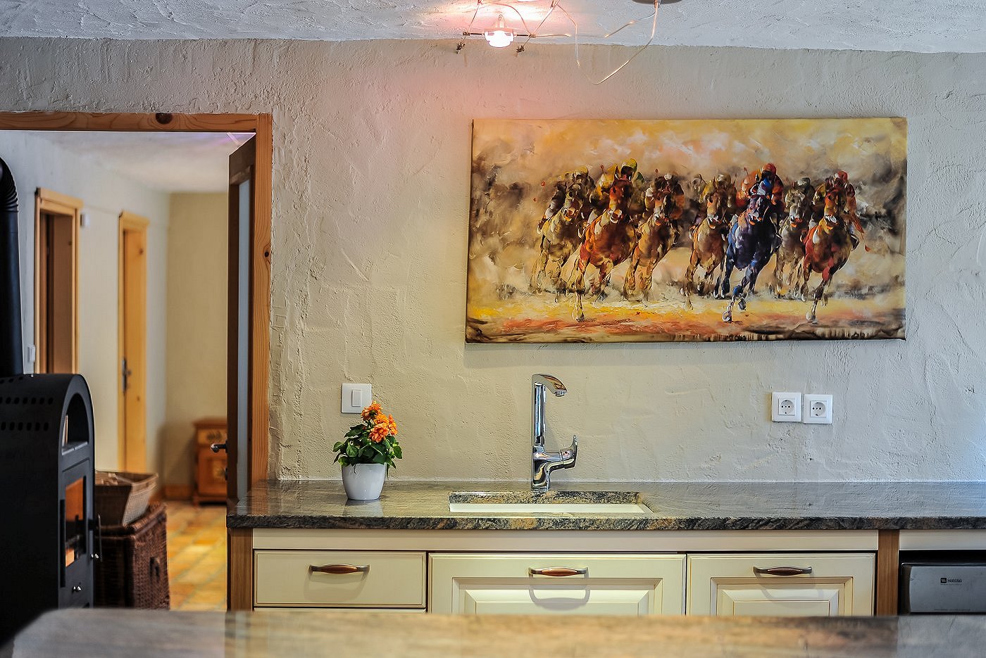 La casa è stata originariamente ristrutturata con standard elevati qualche anno fa e abbiamo poi ultimato e arredato altre due camere da letto. Costruita su tre piani, al piano terra c'è una grande camera da letto con bagno interno con letto grande e bagno superbo. C'è anche un piccolo angolo cottura/bar qui.