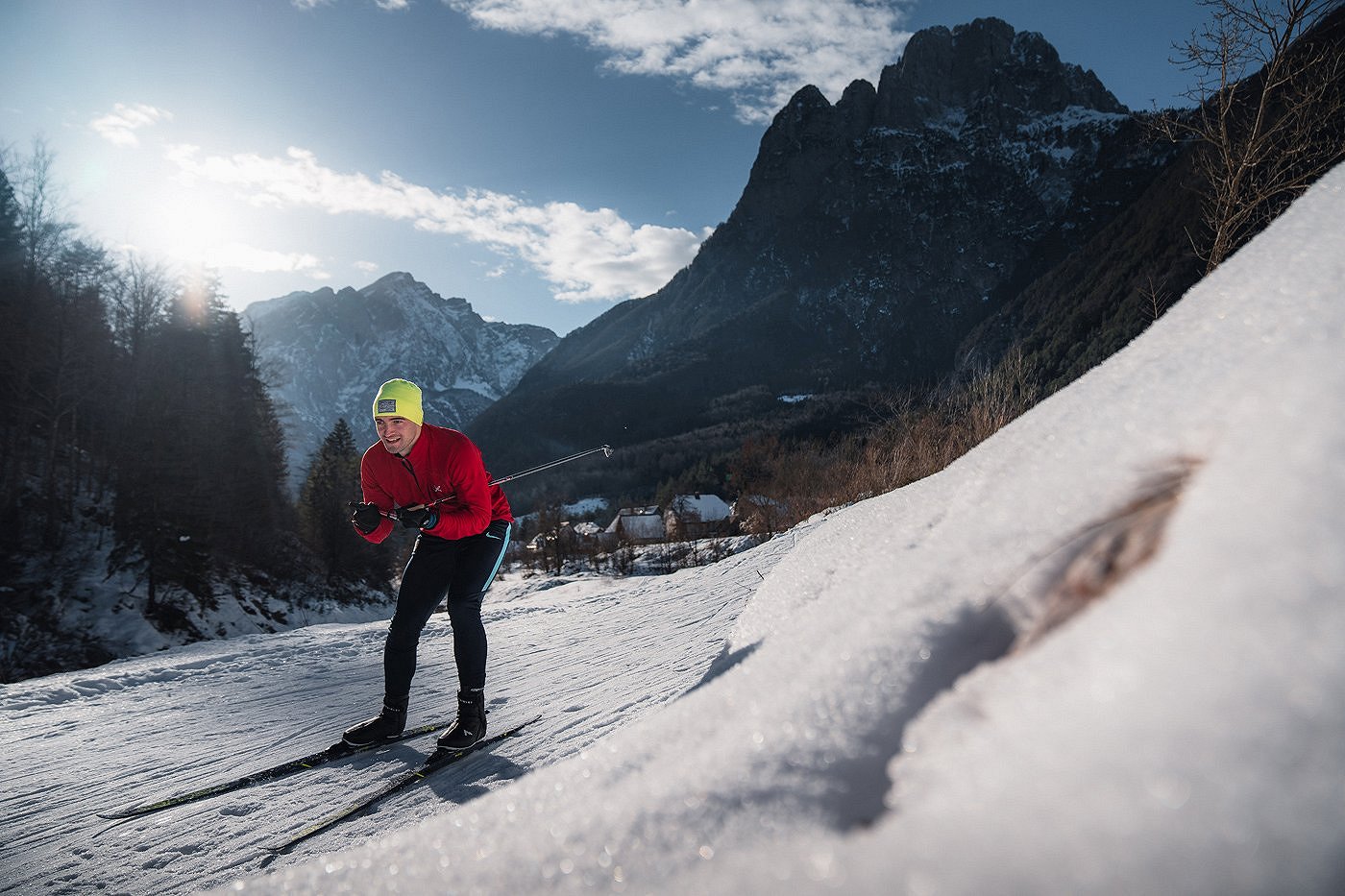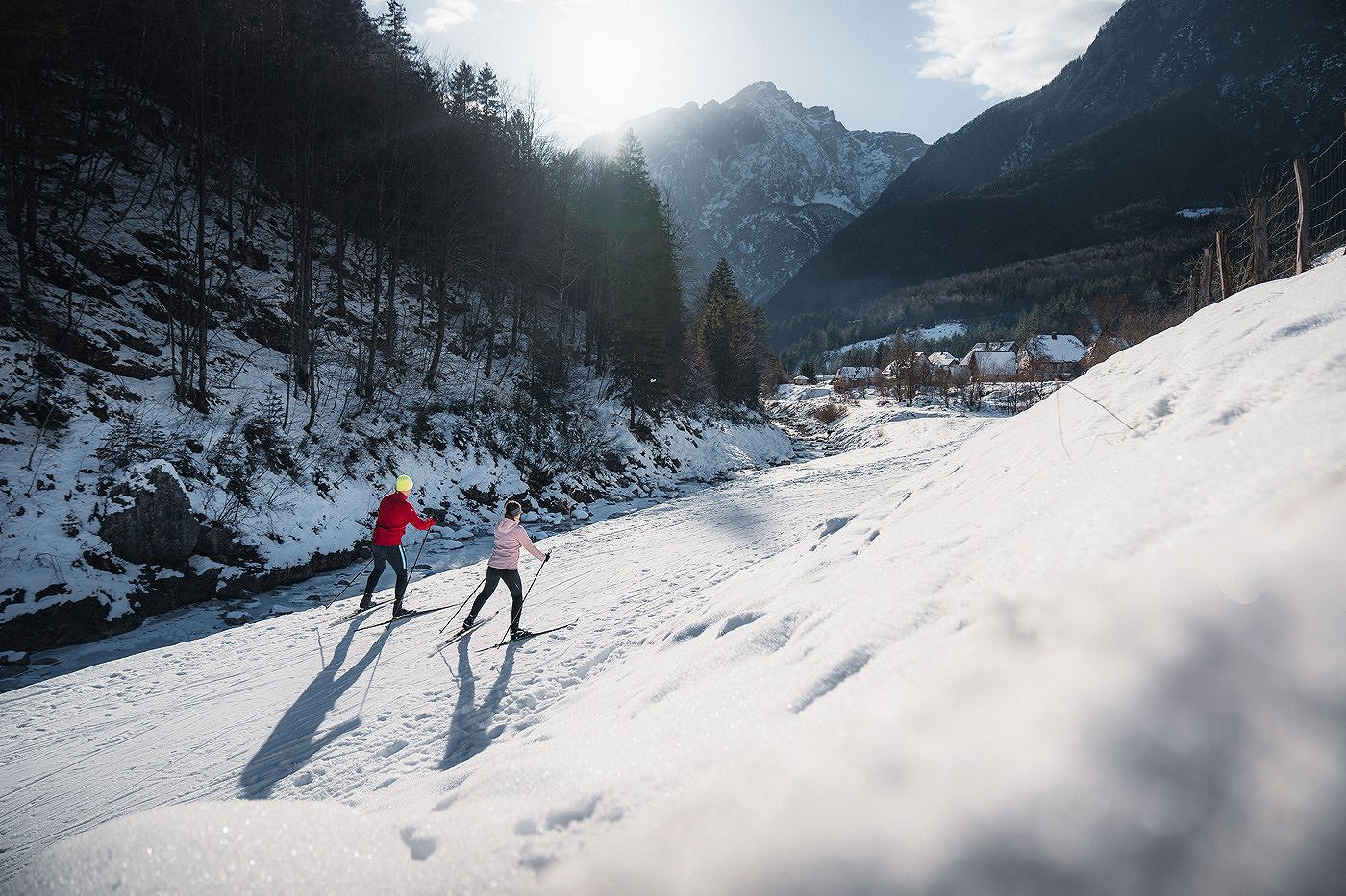 Tra le imponenti vette alpine, sotto la famosa parete Loška stena, le gite con gli sci di fondo sono delle vere e proprie avventure.